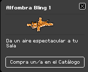 Debes encontrar y hacer doble clic en la Alfombra Bling 1. En cuanto la hayas completado, se te añadirán 6 corazones, y si no has gastado ni uno de los anteriores, tienes un total de 71. Nosotros, pues, te facilitamos la búsqueda del furni. Debes ir a esta sala, y hacer dos clics al mueble en cuestión, así tener el reto completado.